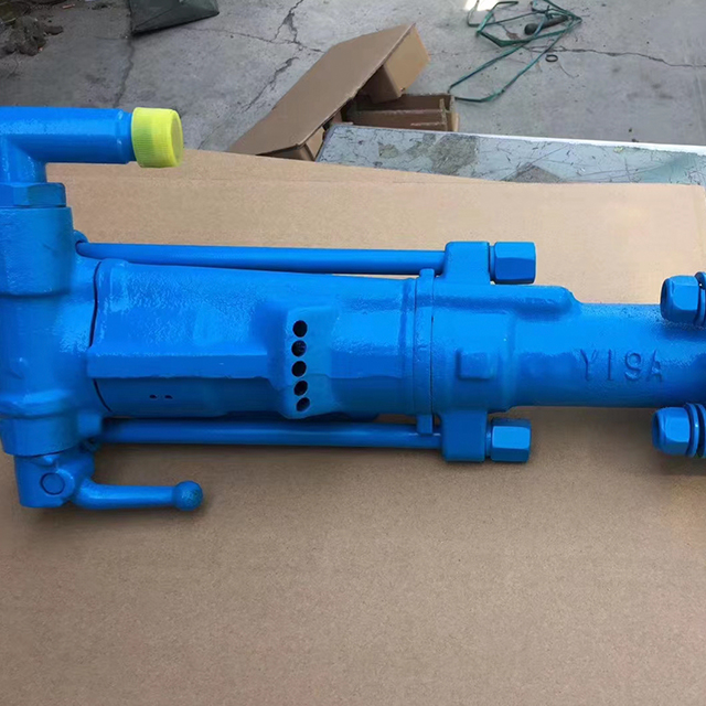 Hand held Rock Drill Model Y19A is mainly used for drilling , second blasting and other works in mines,railway,and warter conservancy projects.It is designed for both dry and wet rock drilling on hard medium hard rocks,and drilling verticaldown or declined blast hole.It can be equipped with pusher legFT100 for different work and conditions.